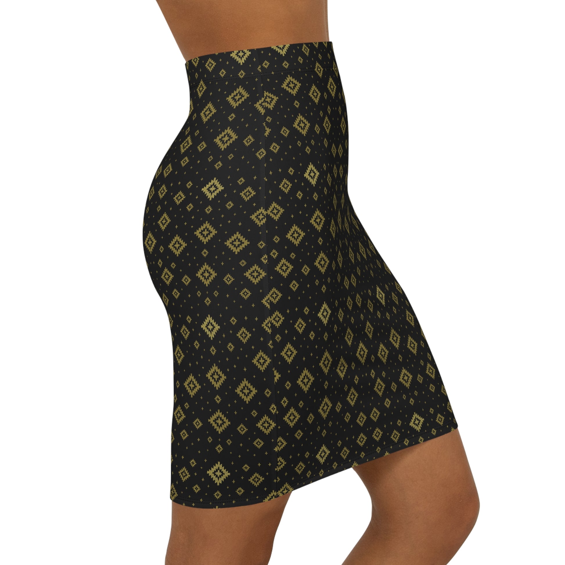 Black & Gold Dhaka Pencil Skirt – Mid-Waist | NepDrip Luxe Edition