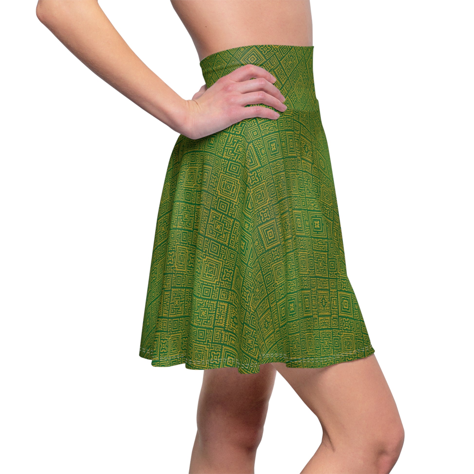 Green & Gold Dhaka Skater Skirt | NepDrip Women’s Collection